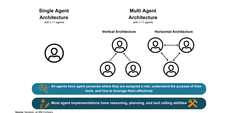 <figure><img src="https://1839612753-files.gitbook.io/~/files/v0/b/gitbook-x-prod.appspot.com/o/spaces%2FpV8SlQaC976K9PPsjApL%2Fuploads%2Fgxd22SOEvNfQknRGgr6s%2Fimage.png?alt=media&#x26;token=56f9565a-0e4a-40fe-a3b2-6a85dd67724b" alt=""><figcaption><p>A visualisation of single and multi-agent architectures with their underlying features and abilities</p></figcaption></figure>