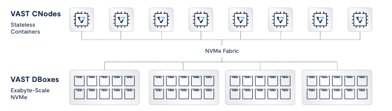 VAST Data has created a new distributed systems architecture that <mark style="color:yellow;">decouples the CPUs (which run the system's logic) from the underlying storage devices.</mark>&#x20;