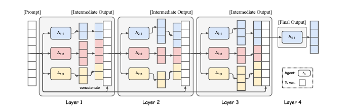 <figure><img src="https://1839612753-files.gitbook.io/~/files/v0/b/gitbook-x-prod.appspot.com/o/spaces%2FpV8SlQaC976K9PPsjApL%2Fuploads%2FIpNminI9NbYa9antclol%2Fchrome_msEKZsOovu.png?alt=media&#x26;token=dc961567-1ba3-4cd8-b118-7c51f42d0909" alt=""><figcaption><p>Illustration of the Mixture-of-Agents Structure. This example showcases 4 MoA layers with 3 agents in each layer. The agents here can share the same model.</p></figcaption></figure>